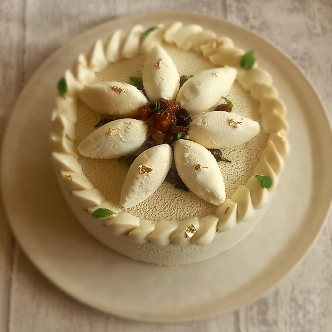 L’entremets Jasmine dévoile une harmonie subtile entre tradition orientale et raffinement pâtissier français.